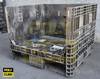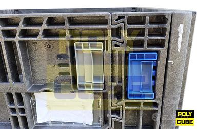 Contenitori industriali in plastica marca ORBIS versione small. Sono abbattibili o richiudibili per abbattere i costi di trasporto nella logistica di ritorno, sono impilabili ad incastro sia da aperti che da chiusi, hanno le slitte sul lato lungo e lo sportellino per il prelievo del materiale anche quando sono accatastati. Lotto di MEDIA QUALITA’: possibili rotture dovute alla presa con carrello elevatore. Misure esterne cm81x77 h64 - Misure interne cm75x69 h49 - Disponibili anche con misure cm120x100h76 e cm 200x120h87. Polycube Srl fornisce contenitori utilizzabili e pronti all’uso, il nostro obiettivo è quello di dare un quadro documentale più trasparente possibile (foto + descrizione). I contenitori non sono ripuliti e non vengono rimosse eventuali etichette. S.E.&O. Proposta da Polycube srl, salvo il venduto, possibilità di spedizione anche per piccoli quantitativi.