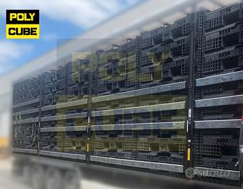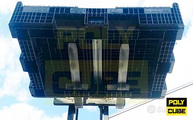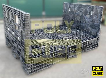 Misure esterne cm 163 x 122 h88 - Misure interne cm 156 x 115 h68 - Disponibili anche con misure cm120x100h76 e cm 200x120h87 e cm 81x77 h64. Polycube Srl fornisce contenitori utilizzabili e pronti all’uso, il nostro obiettivo è quello di dare un quadro documentale più trasparente possibile (foto + descrizione). I contenitori non sono ripuliti e non vengono rimosse eventuali etichette. S.E.&O. Proposta da Polycube srl, salvo il venduto, possibilità di spedizione anche per piccoli quantitativi. Prezzi su richiesta con sconto su quantitativi.