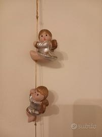 Vendo decorazione natalizia da parete vintage con angioletti che si arrampicano, dorati e argentati, in cotto verniciato, lunghezza totale 82cm, numero di angioletti 10 ognuno dei quali alto 4-5cm circa. Alta qualità, raffinata idea regalo.