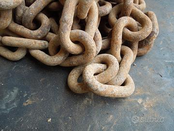 Catena in ferro antica da 7800 mm, con occhio 55 x 85, spessore 18 mm da nave.