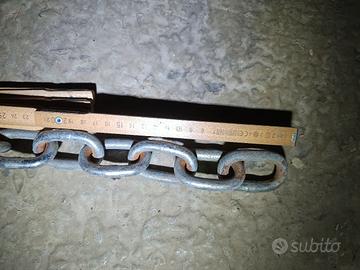 Catena acciaio zincato lunga 5,1 mt con maglie cm 5,5 x 2,5. Completa di lucchetto Yale lungo 10 cm.