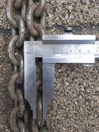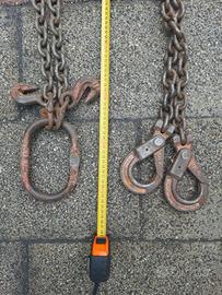 Catena usata per sollevamento a due bracci con ganci Clevis e accorciatori catena grado 8. Realizzata in Italia con acciaio di alta qualità, non cinese. Vedi foto. Lunghezza catene compreso ganci 5mt. Anelli di 8 mm di diametro. Portata 2,8 t. Vendo per 150 euro. No spedizione solo ritiro.