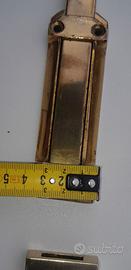 Catenaccio fermaporta saliscendi gancio porta in Ottone Lucido 20 cm x 3,5 cm usato ma in ottime condizioni vedere foto. Ne ho 2 pz completi prezzo cadauno Nehoanche dialtre misure più lunghi stesso modello ritiro su Grosseto o Roma o Spedizione.
