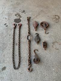 Catene da sollevamento e carrucole. Usate in buone condizioni.