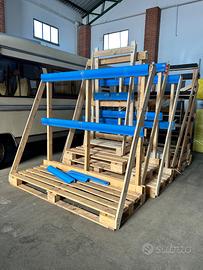 Cavalletto in legno, progettato specificamente per l'imballaggio, lo stoccaggio e il trasporto in sicurezza di materiali lastriformi o ingombranti. Vendita anche singolo pezzo.