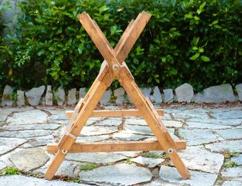 Classico cavalletto artigianale in legno fisso (non richiudibile) professionale per taglio della legna ma multifunzionale, robusto, inamovibile e indeformabile (assemblato con listelli in legno di cm 4x5 stagionato 25 anni, tasselli e viteria).