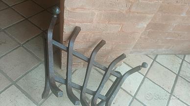 Trepiede/ cavalletto per legna nel camino in ferro molto robusto...largo cm 45 alto cm 14