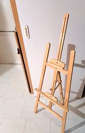 Cavalletto treppiede in legno, per pittura, regolabile in altezza, pieghevole "salvaspazio", in ottime condizioni; misure: altezza 123 cm, larghezza 45 cm; ubicazione: San Donato Milanese (MI)