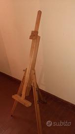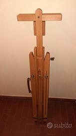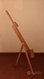 Cavalletto treppiede da pittura realizzato in legno massello, pratico e stabile. Questo cavalletto è regolabile con facilità grazie alle rotelle e alle gambe telescopiche e indipendenti tra loro, anche sui terreni sconnessi.