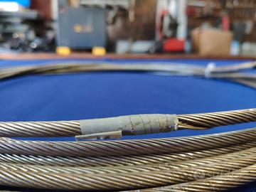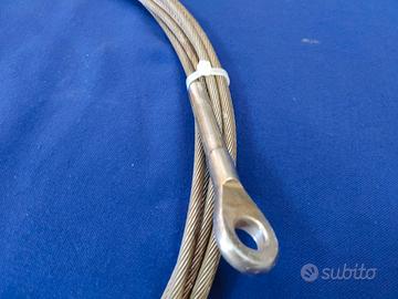 Vendo cavo d’acciaio lungo 10,5 metri realizzato in acciaio inox Aisi 316, diametro 6 mm, intrecciato, 19 fili, ideale per sartie, stralli o applicazioni statiche. Carico di rottura 2700 kg. Equipaggiata di terminale con filettatura metrica diametro 11 mm e terminale ad occhiello del diametro interno di 13 mm. Ad una lunghezza di 8 metri è presente la rottura di un paio di trefoli.