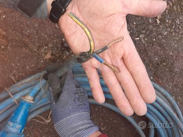 Vendo cavo elettrico tripolare usato, lunghezza circa 34 metri, dotato di presa solo a una estremità (all'altra va aggiunta), reca la dicitura 3G6 CEI 20-22, marca La Triveneta. Ciascuno dei tre cavi interni ha diametro di circa 3,5 millimetri (solo la parte in rame, non il rivestimento isolante esterno). Prezzo 35 euro. Ritiro a mano a Monza. Se l'annuncio è visibile l'articolo è ancora disponibile.