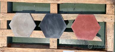 Vendo cementine esagonali originali primo '900 rosse, nere e grigie per creare un pavimento a fiori come quello che vedete in foto. In OTTIME condizioni: 79 rosse, 158 grigie e 13 nere. Circa 9 ma Vendo a 800 euro trattabili (io ne ho pagati più del doppio per acquistarle) Già inscatolate, pronte per partire Ritiro a mano a Reggio Emilia Spedizione in Italia a carico dell'acquirente