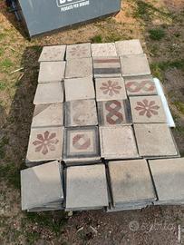 cementine antiche adatte a progetti di design per rivestimento cucine o pareti doccia adatte ad essere affiancate a materiali moderni , per creare effetti particolari , un centinaio di pezzi venduti solo in blocco a corpo