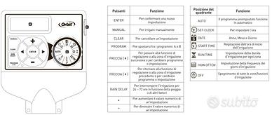 Centralina irrigazione Orbit 94874 Pocket Star Ultima 4 stazioni con 2 programmi indipendenti (A e B) con possibilità di più attivazioni al giorno, irrigazione manuale, ritardo pioggia configurabile e possibilità di collegare un sensore di pioggia (non incluso). Nella scatola: - centralina - pila CR2032 di backup in caso di mancanza di corrente - manuale cartaceo - alimentatore
