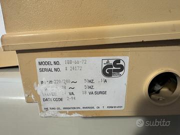 Quando ho acquistato la casa ho trovato questa centralina di irrigazione Toro Vision (modello con controllo fino a 6 zone), che il giardiniere del proprietario precedente aveva montato per gestire l’irrigazione automatica del prato. Si tratta di un programmatore elettronico che funziona da “cervello” dell’impianto, cioè comanda le singole valvole in base a un orario prestabilito, permettendo di irrigare automaticamente aree diverse del giardino senza intervento manuale. I modelli della serie Vision sono stati progettati per uso residenziale “full automatic”, con memoria programmabile, orologio interno e possibilità di impostare sequenze di irrigazione per ciascuna zona tramite selettori e un pannello frontale semplice da settare.