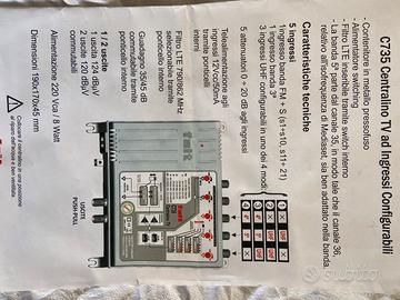 Vendo centralino per antenna con 5 ingressi con guadagno + 45 db e uscita da 124 db Frequenze supportate: FM (87.5-108 MHz), Banda S, Banda III, Banda IV, Banda V (fino a 862 MHz) e UHF.