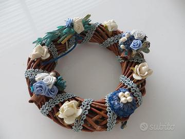 Coppia di centro tavola con composizione primaverile, fatti a mano, NUOVI, per la tavola di Pasqua: euro 5 ciascuna ghirlanda.