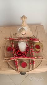 Centrtavola con 3 candele rosse profumate una chiara al centro Pinetto in legno, decori.