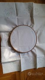 vendo coppia cerchi da cm 20 e da cm 32 in legno per ricamo tessuto in cotone matassine filo cotone manuale porta ferri e ferri in legno usati in ottime condizioni spese di spedizione comprese