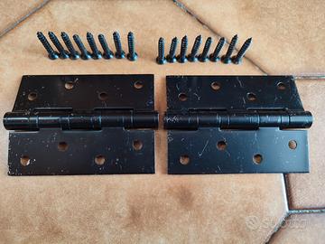 Vendo n.2 cerniere "a libro" in acciaio inossidabile a 8 fori, per ante di mobili/ porte interne ed esterne in legno ecc., trattate con vernice antiruggine di colore nero e corredate di viti.
