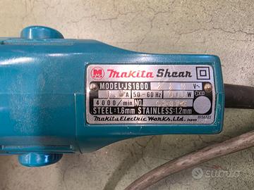 Vendo cesoia elettrica Makita JS1600 usata e perfettamente funzionante. Motore da 800W, velocità 4000 colpi al minuto, capacità di taglio 1,6 mm su acciaio e 1,2 mm su acciaio inox. Completa di cavo originale e cassetta in metallo per il trasporto. Ideale per lavori professionali su lamiere e coperture metalliche.