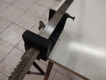 Cesoia per il taglio di lame in acciaio per seghe a nastro. Larghezza massima di taglio 50 mm. spessore massimo 1,2 mm. nuova mai usata con qualche segno di ruggine dovuto al lungo imagazzinamento. Nell'ultima foto notare il grasso di protezione dei coltelli seccato ed annerito dovuto al lungo tempo di magazzino. Pulire con benzina o diluente prima dell'uso.