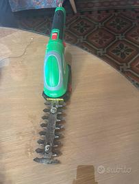 Cesoia ricaricabile per erba e cespugli con sistema ad innesto,usata solo 2 volte per cambio casa senza giardino.Lame leggermente ossidate per mancato utilizzo