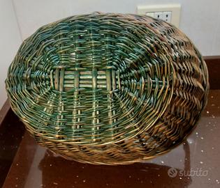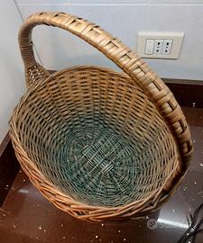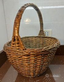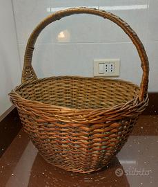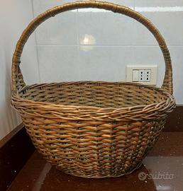 Cesta in vimini con manico. Misure 42 x 34 x 40 altezza. Interno alto 21 cm. Ideale da utilizzare come cesta per la legna o essere utilizzata per la raccolta di castagne, funghi e frutti di bosco, oppure come cesto regalo. Richiesta 20 euro.