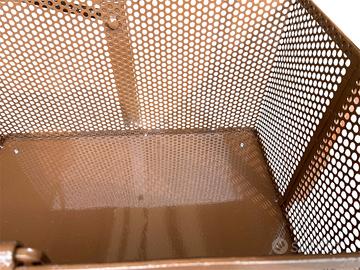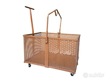 Cesta porta-tutto per montacarichi con doppia maniglia e ruote Cm 41 x 60 x H 71 compreso maniglione Misure interne del cestello cm 41 x 60 x H 35 Ceste in acciaio verniciato per paranchi montacarichi Cestelli utili per legna da stufa o camino, pellet, casse d'acqua, spesa, mattoni, sacchi di calce, mattonelle etc. Ingombro massimo compreso maniglione di aggancio cm 41 x 60 x H 65 Misure interne della cesta cm 41 x 60 x H 35 Altezza da terra dell'aggancio sul maniglione centrale cm 65 Maniglione rinforzato e girevole con gancio di sicurezza Maniglia tipo trolley amovibile Fondo rinforzato ruote piroettanti girevoli Montaggio semplice e veloce del kit di ruote Peso della cesta kg. 11,00 Articolo Nuovo MADE IN ITALY Prodotto artigianale in acciaio verniciato