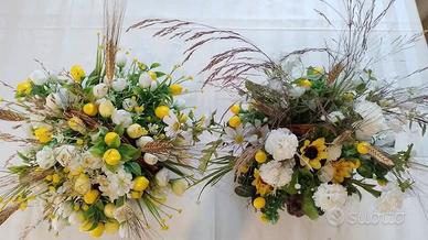 Sono 15 cestini in midollino decorati con fiori finti da una designer che li aveva realizzati per un evento che poi non si è tenuto.
