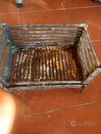 cestello in ferro robusto artigianale misura 27 x 42 altezza 26 questa cestello può essere immesso in un caminetto oppure in una stufa (in base alle misure se entra)e potrà alimentare questa con policombustibili per esempio pellet e mettendo una rete fine, oppure noci sanza ecc lo vendo perché adesso sono passato a gas