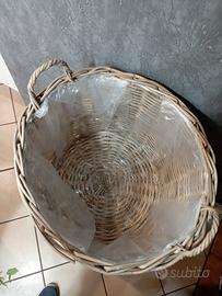 N°2 cesti nuovi in vimini con nylon all'interno da utilizzare come sottovasi o cesti biancheria,portata giochi o portatutto.