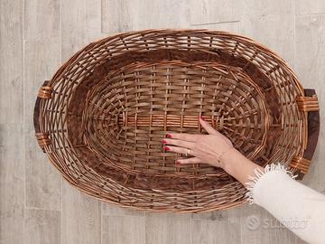 cesti in vimini , manici in legno, capienti e ideali per idee regalo