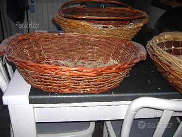 Vendo stock di cesti in vimini usati, come nuovi, di vari modelli, capienti, totale 20 pezzi . Per chi ha la passione del bricolage possono essere rivestiti in stoffa e usati come porta oggetti oppure usati come cesti natalizi. A soli 3 euro al pezzo, ma, se presi tutti insieme, il prezzo diventa trattabile.