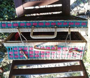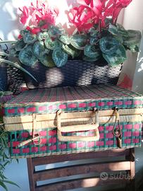 Cestino da picnic in vimini/ valigia. Ha due manici e chiusura con due alamari in vimini. Da usare in maniera creativa o per collezionisti. Bellissima su auto d’epoca e/o cabriolet.