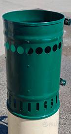Cestino portarifiuti o gettacarte per esterno, di forma cilindrica, realizzato in acciaio zincato e verniciato.