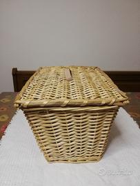 Bellissimo cestino in vimini naturale, ideale per il picnic. La struttura a valigetta lo rende ideale per il trasporto di vivande durante escursioni o gite fuori porta. Può essere utilizzato anche per arredamento. Dimensioni 40x27x24 cm. In ottime condizioni, mai utilizzato.