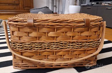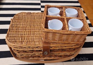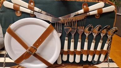 vendo cestino da picnic nic compreso di 12 posate 3 piatti (ne manca uno) 4 bicchieri e cestino porta bicchieri misure 45 x 28 x h25