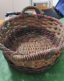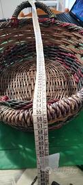 cesto in vimini con intrecci colorati due manici cm 55