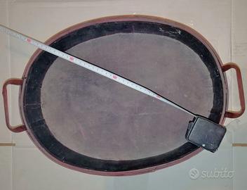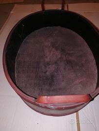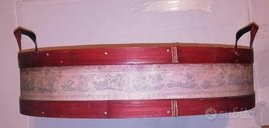 Il cestino ha forma ovale ed ha un bel colore legno scuro.
