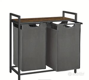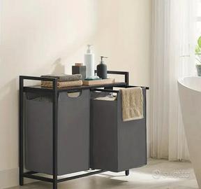 Cesto portabiancheria a 2 scomparti, Sacchi portabiancheria estraibili e rimovibili, Smistatore di biancheria, Scaffale, Struttura in metallo