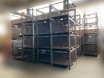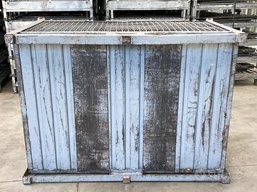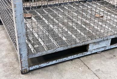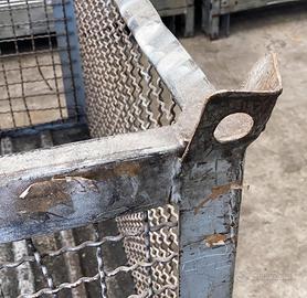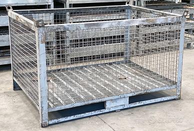 Grandi cassoni o cestoni in rete metallica elettrosaldata versione big, pianale in lamiera e struttura in acciaio. Sono sovrapponibili ad incastro. Usato di buona qualità come da documentazione fotografica. Misure esterne cm 160x114 h97 Misure interne cm 155X110 H77. Tara kg 90 +/- 5%