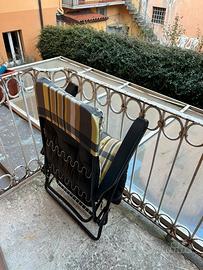Chaise longue da esterno, struttura in acciaio, rivestimento imbottito. Leggera e occupa poco spazio. Regolabile su diverse inclinazioni, da seduta verticale a quasi completamente orizzontale. Molto comoda.