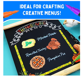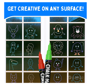 Vendo Chalkola 20 pezzi pennarelli punta 3mm a base d'acqua colori diversi cancellabili . Nuovo com scatola . 20 pennarelli di colore diverso , a base d'acqua, punta da 1mm cancellabili su alcune superfici. Utilizzabili su vetro , lavagne , plastica , metallo , ceramica etc . Su alcuni materiali si cancella con difficoltà, ad esempio vestiti , muri , carta , legno non trattatato . Sicuri essendo a base d'acqua. Anche per i più piccoli . Utilizzabile in casa con lavagne per decorare vetri , in negozi per fare lavagnette esterne o decorazioni sui vetri . Originali