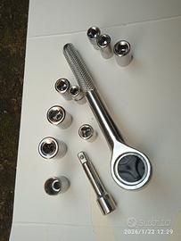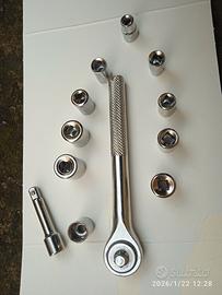 chiave a cricchetto acciaio inox con 10 bussolotti misure dal 5mm al 13mm il numero 8 mm e doppione quasi mai usato, in perfette condizioni