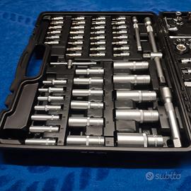 Vendo set da 195 pezzi di chiavi a cricchetto ed inserti marchiati KS Tools, costituito da numerosi raccordi con attacchi quadrati da 1/4 ", 3/8" e 1/2" realizzati in acciaio al cromo-vanadio a finitura satinata di eccellente qualità Made in Germany. Il profilo esagonale Flank Traction della serie Evolution, le rende ideali per usi particolarmente gravosi soddisfando appieno le diverse esigenze sia dei professionisti che degli appassionati di bricolage. Ogni singolo pezzo, marchiato dalla casa costruttrice, è ben organizzato in una robusta custodia in ABS di facile trasporto.