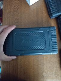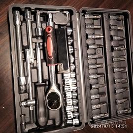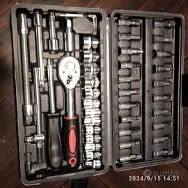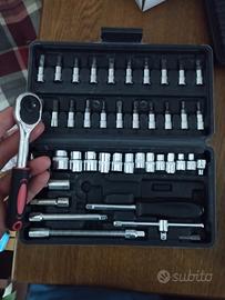 cassetta di chiavi a bussola con cric piccolo 1/4 con prolunghe ed inserti cacciavite