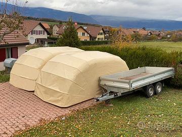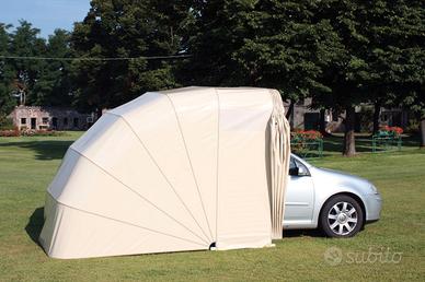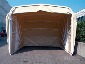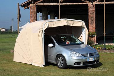 Ottima copertura per auto per chi cerca funzionalità e design, disponibile nella versione a una chiocciola (con possibilità di ancoraggio del gazebo e di porta scorrevole sul retro) o due chiocciole (per maggiore praticità).