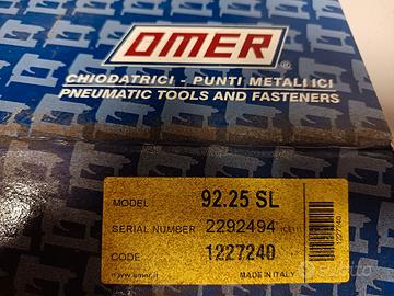 VENDO CHIODATRICE/GRAFFATRICE PNEUMATICA MARCA OMER MOD. 92.25 SL (COD. 1227240) PER INUTILIZZO.