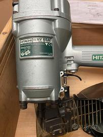 Vendo Chiodatrice Pneumatica Hotachi NV 65 AH. Tipo di bobina convessa, per chiodi elettrosaldati; l'uscita per i chiodi èstretta e allungata e facilita quindi il lavoro inspazi stretti.Caricatore di tipo aperto,Inclinato per lavorare meglio negli angoli. Applicazioni: Ideale per lavori nel settore dell'edilizia, come ad esempio l'isolamento dipareti, la copertura di tetti, la posa di tavolein vista; preparazione di casse in legno e bancali leggeri . Con fornitura bobine Chiodi 19.200 chiodi